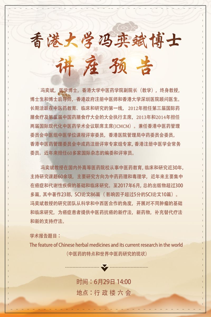 学术讲座预告:中医药的特点和世界中医药研究的现状